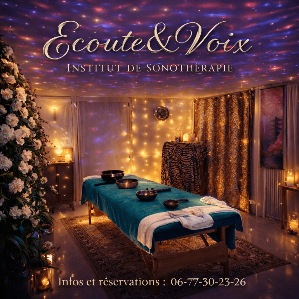 une immersion vibratoire où vous restez confortablement allongé(e) et habillé(e), simplement porté(e) par la magie des sons.